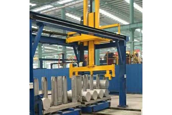 O manipulador suspenso é usado para o abastecimento de tarugos de alumínio para o forno de pré-aquecimento, podendo ser controlado para alcançar a coleta automática dos tarugos de alumínio.