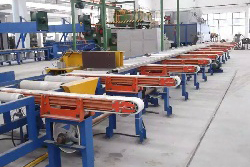 Máquina de corte do produto final: a velocidade de alimentação é ajustável, com função de auto-lubrificantes, garantindo assim uma serragem de alta precisão e lisura do corte transversal.